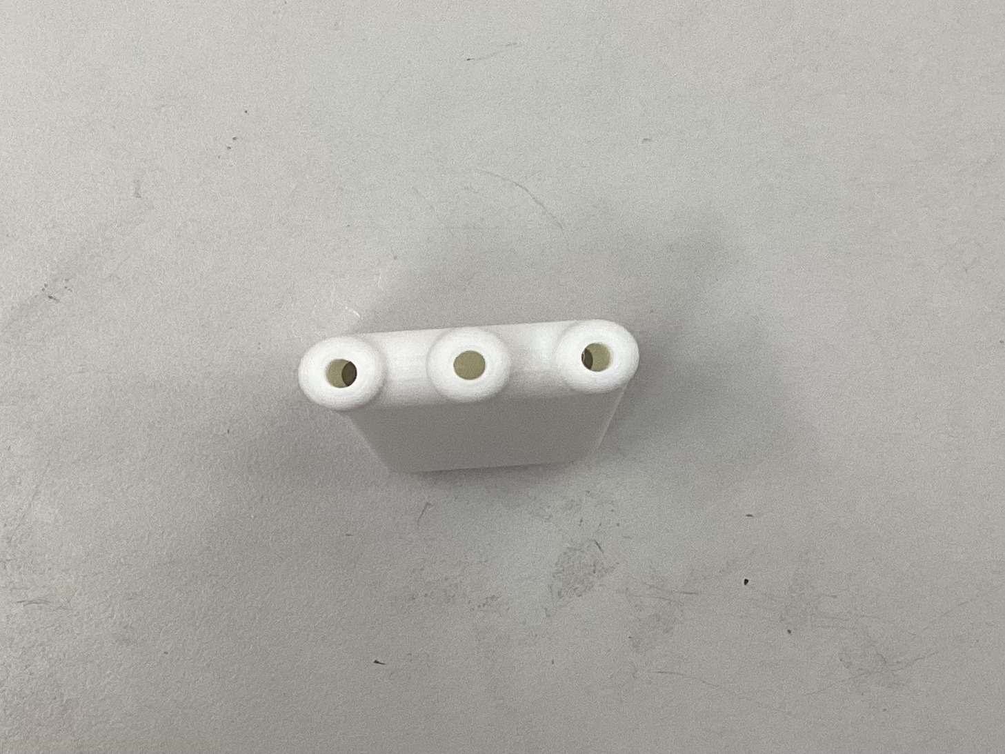 I then printed all four mouthpieces. I left the settings as the defualt, however I turned off supports becuase the print did not require them. This print requires 39.34g of PLA filament and has a cost of $0.79. I tested that the four sip-and-puff holes at the top connected correctly to the holes at the bottom, which interface with the QuadStick itself. Below are a few pictures of the four printed mouthpieces and their assets: