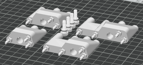 I was able to download all of the CAD 3D solidworks files for the screws and connectors off of the McCaster-Carr website. I created this file with all of the required screws and connectors to 3D print. A picture of all of them is below: